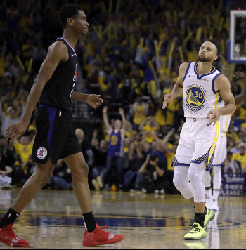 NBAの西地区プレーオフでは、ファイナル3連覇を狙うウォリアーズが地元オークランドで8位のクリッパーズを121―104(前半69―56)で下して白星発進。ステフィン・カリー(30)が3点シュートを12本中8本成功させ、38得点とプレーオフ自己最多となる15リバウンドを稼いで勝利に貢献した。