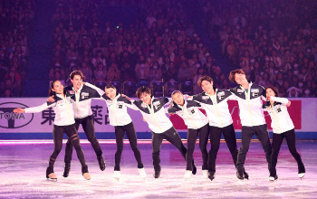 エキシビジョンが行われ、準優勝の日本チームは平成のJ―POPメドレーを披露した。主将の小松原美里が「平成最後の大会ということで、みんなで5つの曲を選びました」と説明し、宇野昌磨が「独断で決めさせていただいた」という米津玄師「Lemon」から舞った。また、「だんご3兄弟」では宇野昌磨&紀平梨花でペアで踊る場面も。