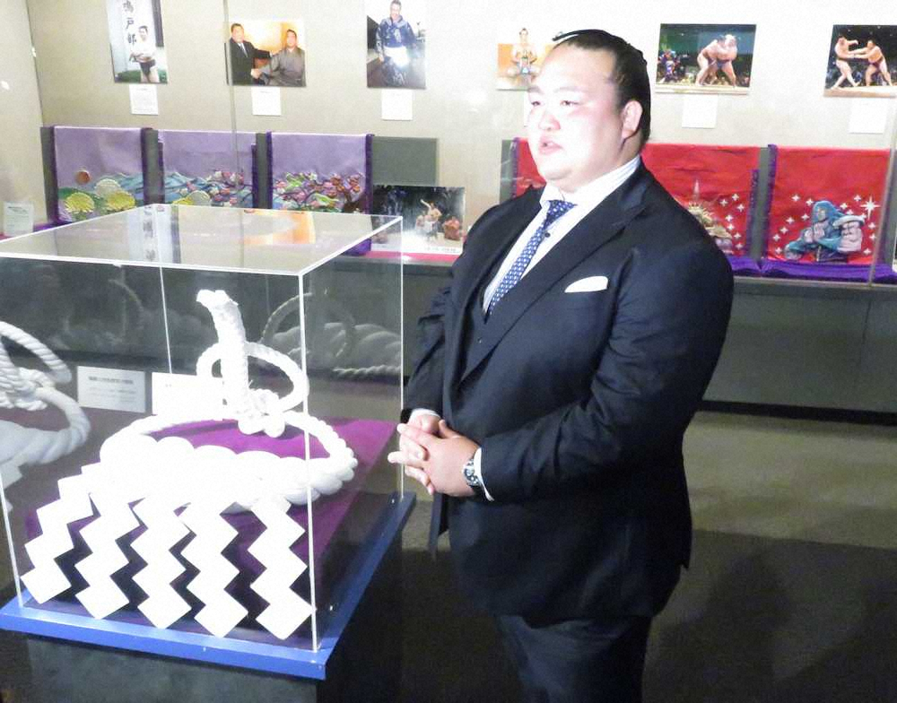 1月の初場所で引退した同親方は、化粧まわしや締め込みなど約80点の展示品をじっくり見詰め「一つ一つに魂がこもっている。全てに思い入れがある」と感慨深げに話した。特別展は6月14日までで、夏場所(5月12日初日、両国国技館)の期間とも重なる。「相撲の合間に見に来ていただけたら。自分が説明もしたい」と意欲を示した。