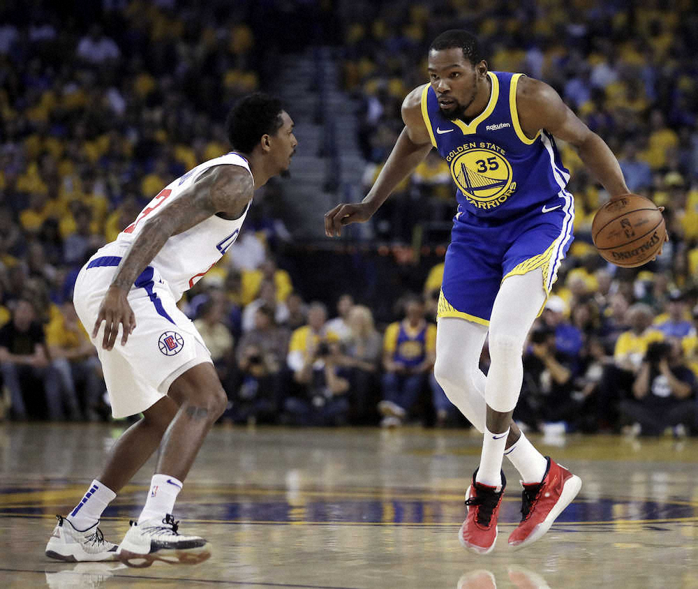 ケビン・デュラント(30)は45得点、ステフィン・カリー(30)は24得点、クレイ・トンプソン(29)は22得点を稼いだが、再逆転されたあとはシュートの精度を欠いて苦杯。西地区準決勝に勝ち上がれば、この日ジャズを4勝1敗で制したロケッツが相手となるが、地元オークランドでシリーズを決着することはできず、26日に敵地ロサンゼルスで第6戦を迎えることになった。