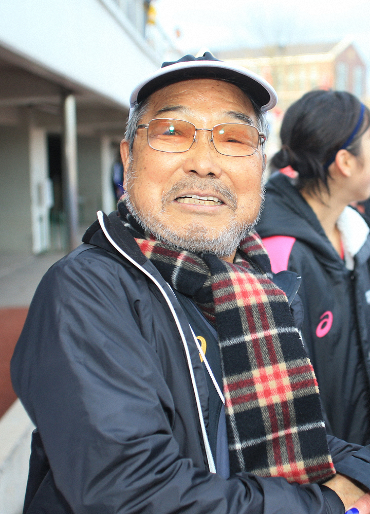 では遠慮なくうかがいますと一眼レフを抱えて練習現場に向かう。学校にほど近い丘陵地で黙々と走る部員の姿をモノクロフィルムに焼き込みながら監督の話を聞く。「優勝なんか意識してないね。目標タイムで走れればいいんですから」。目を細めるその姿からは大会前のプレッシャーなどみじんも感じられなかった。走っている若い選手を見るのが大好きなおじさん、といった風だ。
