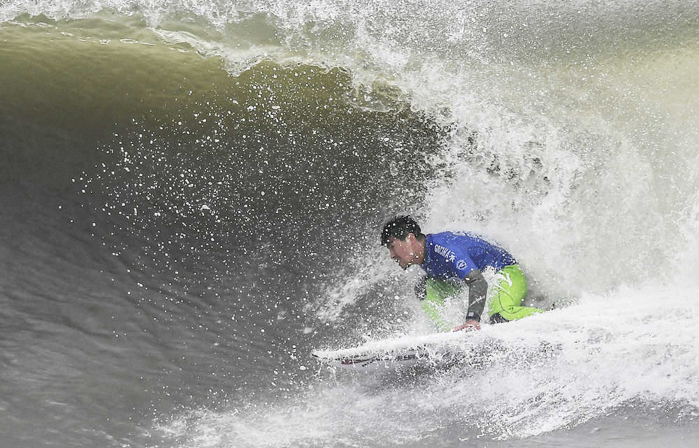 サーフィンの一宮千葉オープン男子は3回戦の6組まで終了して22歳の稲葉玲王と23歳の河谷佐助が4回戦に進出した。