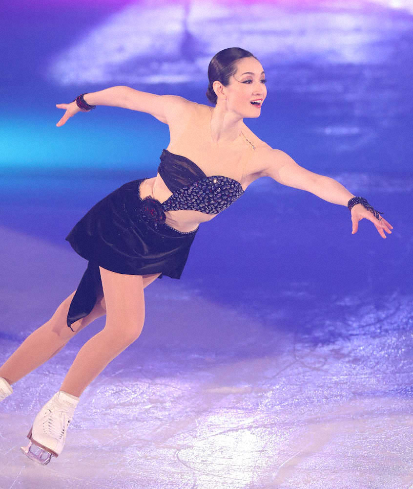女子で06年トリノ五輪金メダリストの荒川静香さん(37)は、黒のセクシーな衣装で登場。「One Day I’ll Fly Away」の音楽に合わせ、06年の流行語大賞にも輝いたイナバウワーで観衆をとりこにした。男子で02、03年世界選手権銅メダリストの本田武史さん(38)もパワフルな滑りを披露。平成を彩った名スケーターも、新たな時代を祝福するかのように舞った。