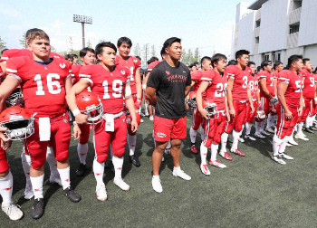 <アメフット春季オープン戦 日体大・日大>試合前、円陣の中央に招き入れられ笑顔を見せる日大・宮川(中央)=撮影・小海途 良幹 Photo by スポニチ 日大アメフット部、処分解除後初の対外試合で快勝も宮川は出場せず ギャラリーで見る この記事のフォト 2019年05月04日の画像一覧 もっと見る 2019年05月04日の画像をもっと見る