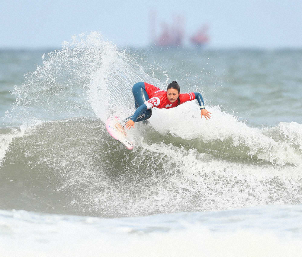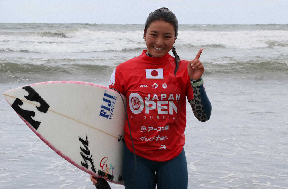 波の条件が良かった準決勝までは、全て合計11点以上を手堅くまとめた。午後3時ごろに始まった決勝は一転波が小さく、中塩にリードを許す展開に。それでも焦らず中盤に5・33点を出して逆転すると、残り3分は優先的に乗る権利を生かし、相手のライディングを阻止。パドルバトルと呼ばれる戦術をうまく利用して逃げ切り「競技中に(状況を)考えて動けたのは成長したところ」とうなずいた。