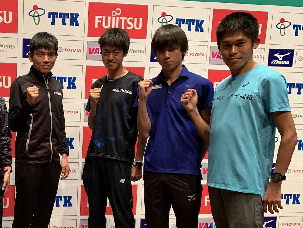 12日号砲の仙台国際ハーフマラソンの特別招待選手記者会見が11日、仙台市内のホテルで行われた。男子で4月にプロ転向した川内優輝(32=あいおいニッセイ同和損保)や20年東京五輪マラソン代表選考会「グランドチャンピオンシップ(MGC)」(9月15日)の出場権を獲得した男子の中本健太郎(36=安川電機)、今井正人(35=トヨタ自動車)、女子の野上恵子(33=十八銀行)、小原怜(28=天満屋)らが出席した。