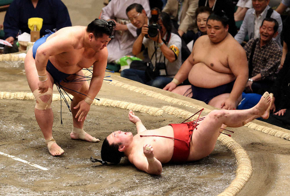 ともに身長1メートル70未満の西前頭14枚目の炎鵬(24=宮城野部屋)と東前頭15枚目の照強(24=伊勢ケ浜部屋)の小兵対決は、先手先手で攻めた照強が制した。新入幕の炎鵬に中に入られて左下手を許したが、右上手を引いて出し投げで揺さぶり、体勢を崩しておいて右からの裾払い。タイミングのいい足技で、相手を土俵上で大の字にした。