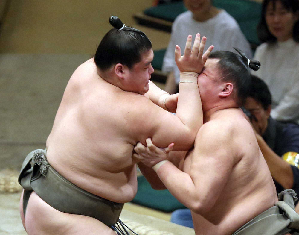 再休場した大関・貴景勝の付け人の幕下・納谷(19=大嶽部屋)が塚原を下して全勝を守った。