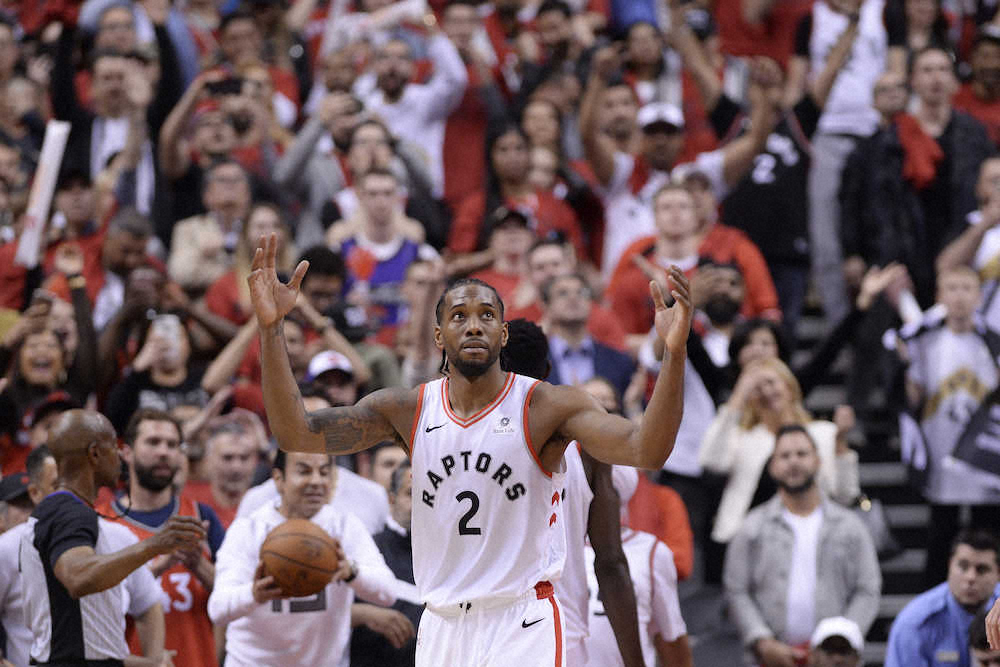 NBAは19日にカナダ・トロントで東地区決勝の第3戦を行い、地元で2位のラプターズが118―112(前半58―51、延長8―8、再延長15―9)で1位のバックスを下し、このシリーズ3戦目で初勝利。カワイ・レナード(27)が再延長での8得点を含む36得点をマークして地元2万人のファンを歓喜させた。