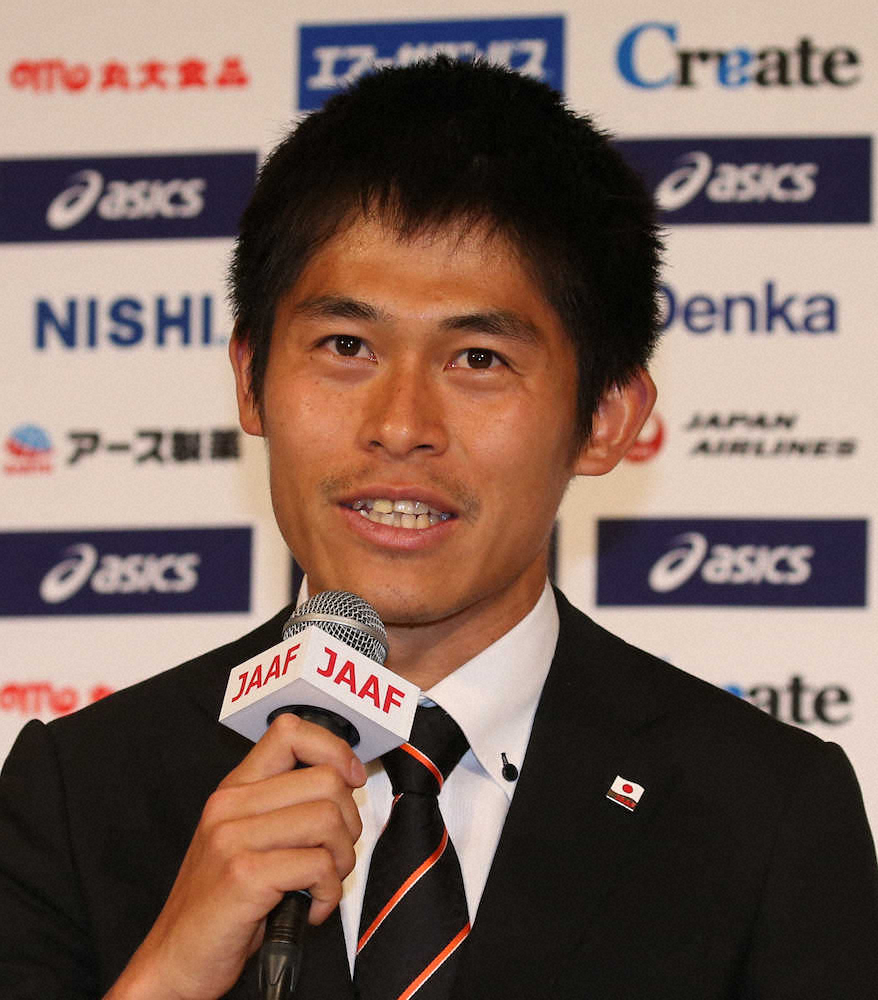 ドーハで行われる世界陸上のマラソンの代表選手に選ばれた川内(撮影・西海健太郎)