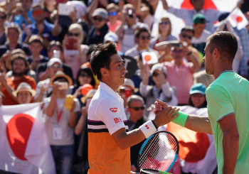 4時間26分の激戦に終止符を打つと、錦織は両拳を高々と突き上げた。両者一歩も譲らずに突入した最終第5セット。4大大会で唯一タイブレーク制がないため、もつれにもつれた。7―6で迎えた相手サーブの第14ゲーム。40―30からの相手フォアがコート外に落ち、5年連続の16強進出が決まった。