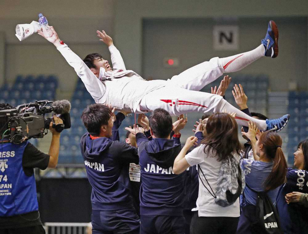 ポイントを重ねても静かに試合を進めていた敷根が、優勝を決めると歓喜の雄叫びを上げた。15年大会の太田雄貴以来となるアジアの頂点。日本のチームメートに胴上げされた21歳は、「頑張りました!そんな感じです。みんなが応援してくれている実感があって、伸び伸び気持ち良く試合ができた」と笑みを浮かべた。