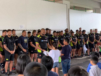 ラグビー日本代表に強力援軍 地元小学校から横断幕&歌のプレゼント