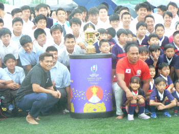 W杯の優勝トロフィー「ウェブ・エリス・カップ」花園で披露