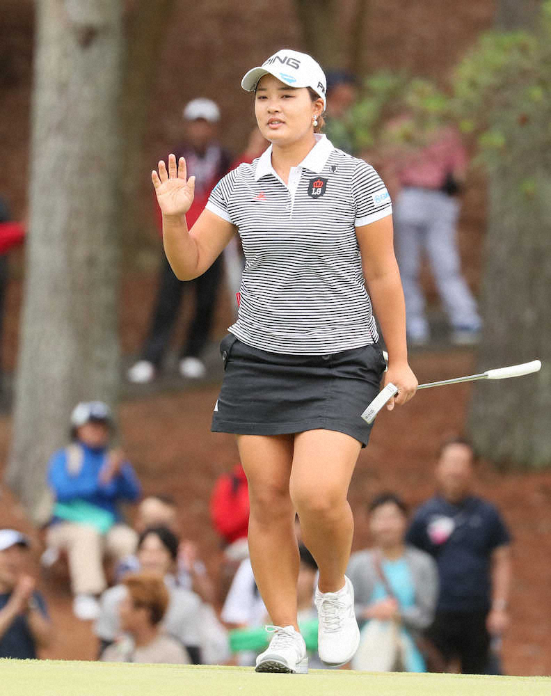 2打差2位から出た鈴木愛(25=セールスフォース)は8ホールを消化し、2バーディー、1ボギーで通算10アンダーの暫定首位に立った。1打差2位に黄金世代の河本結(20=フリー)が続いた。