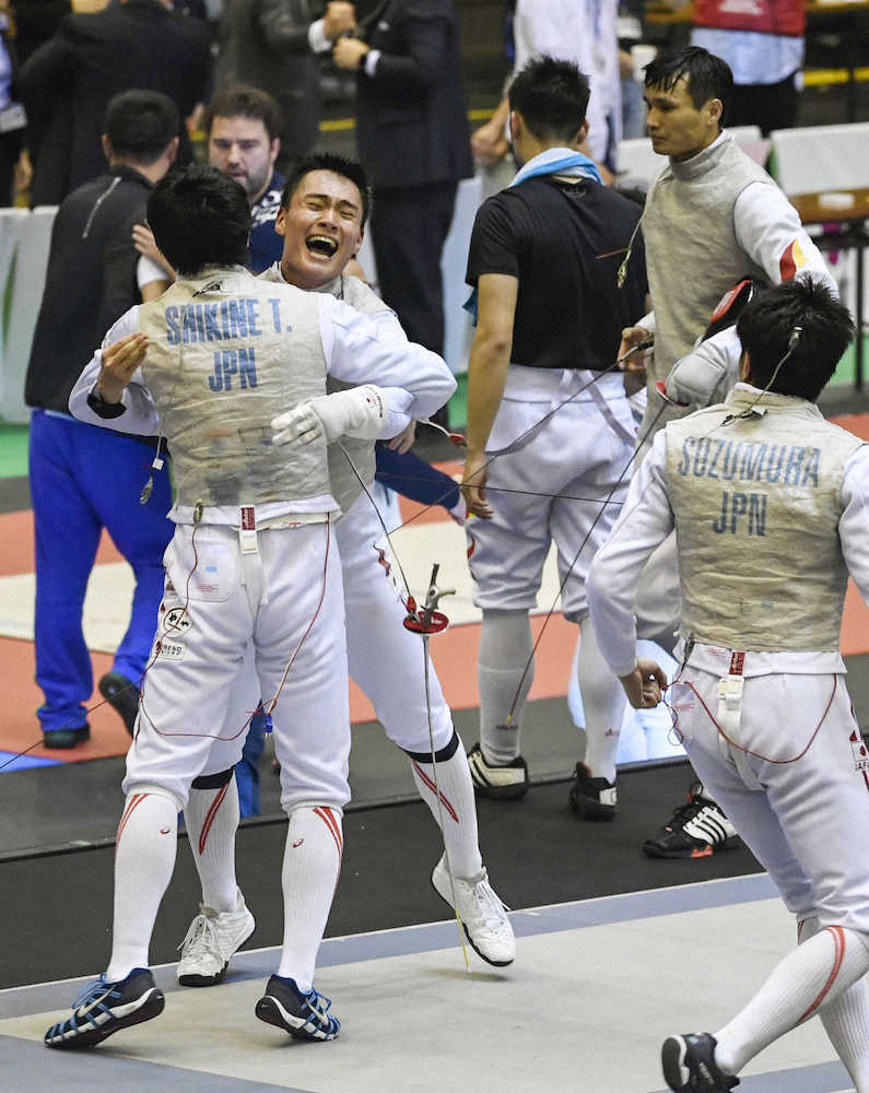団体戦2種目が行われ、男子フルーレは世界ランク7位の日本(松山、敷根、鈴村、三宅)が同10位の中国に45―43で競り勝ち、日本協会の太田雄貴会長(33)が出場した09年以来、10年ぶりの優勝を飾った。女子サーブルの日本(青木、福島、江村、田村)は準決勝で中国に敗れたが、3位決定戦でカザフスタンに45―35で勝利し、銅メダルを獲得した。