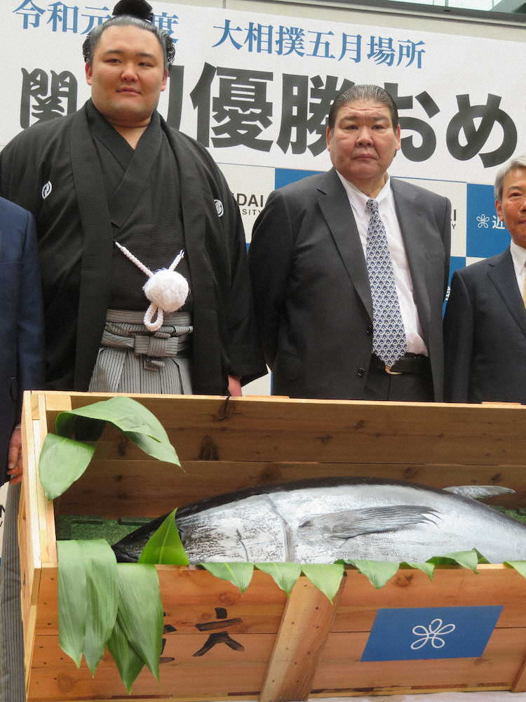 近鉄長瀬駅からの1キロをオープンカーで移動。観衆は同校発表で7000人と、過去最多だった12年ロンドン五輪後の2000人を大きく上回った。朝乃山は「平日にもかかわらず想像以上に多くてビックリ」と感謝。近大マグロ46キロ、約30万円相当のプレゼントに「刺し身にして食べたい」と笑顔を見せた。