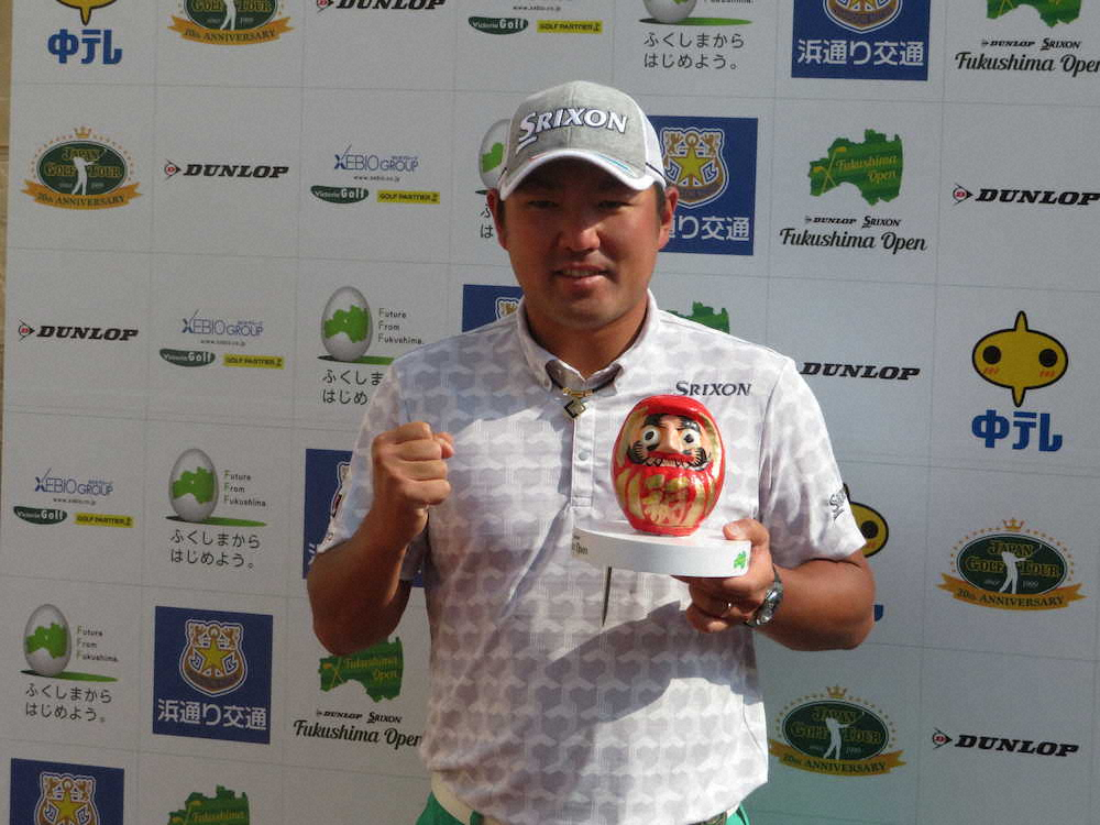 男子ゴルフのダンロップ・スリクソン福島オープンは27日に福島県のグランディ那須白河GC(6961ヤード、パー72)で開幕する。大会前日の26日、ティーグランドに設置される白河だまるの目入れが行われ、昨年優勝の秋吉翔太(28=ホームテック)が18番で使用される白河だるまに墨を入れた。だるまの目入れは初体験というが「縁起がいいなと思いました。しっかり連覇をして来年も書けるように頑張りたい」。今季はベスト10入りがないが、前戦のツアー選手権森ビル杯最終日に復調への手応えをつかんだ。1Wは飛ばす、アイアンショットは寄せる、パットは入れるという単純な発想でプレーしたら感触が良化。「その後の韓国遠征などで楽しみながらゴルフをしたら雰囲気も持ってきて、いい感じになっています」と笑顔を浮かべる。