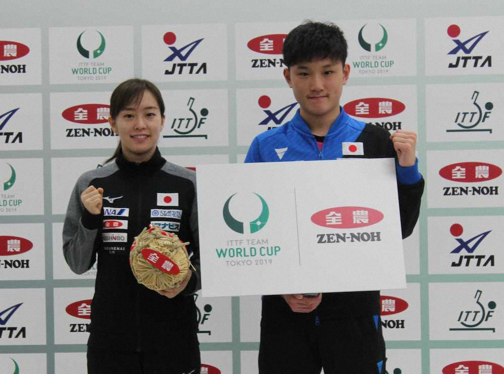 卓球日本代表の石川佳純(26=全農)と張本智和(16=木下グループ)が27日、都内で行われた「JA全農 2019ITTFチームワールドカップ東京大会」(11月6日~10日)の大会開催発表会見に出席した。