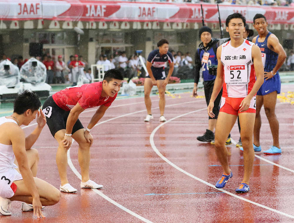 今大会2位だった100メートルで、今秋の世界選手権代表が有力。7月は東京五輪の代表選考に影響する世界ランキングのポイントを稼ぐため、欧州遠征を敢行する。「100メートルに特化したい」と話し、再び9秒台を目指す考えを示した。