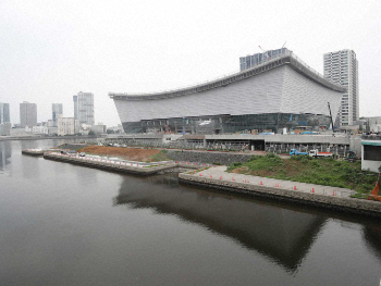 20年東京五輪・パラリンピックに向けて臨海部に新設中の選手村(中央区)や競技会場の計4施設が報道陣に公開された。