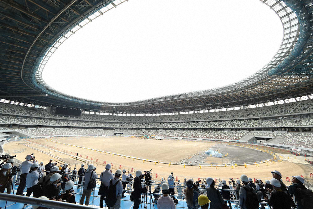 日本スポーツ振興センター(JSC)は3日、20年東京五輪・パラリンピックのメインスタジアムとなる新国立競技場(東京都新宿区)の建設工事現場を報道陣向けに公開した。36カ月の施工期間は残り5カ月となり、11月末の竣工へ向け9割が完成。木と風と技術が調和した「杜のスタジアム」の全容をスポニチ本紙の五輪担当記者、鳥原有華(27)が紹介する。