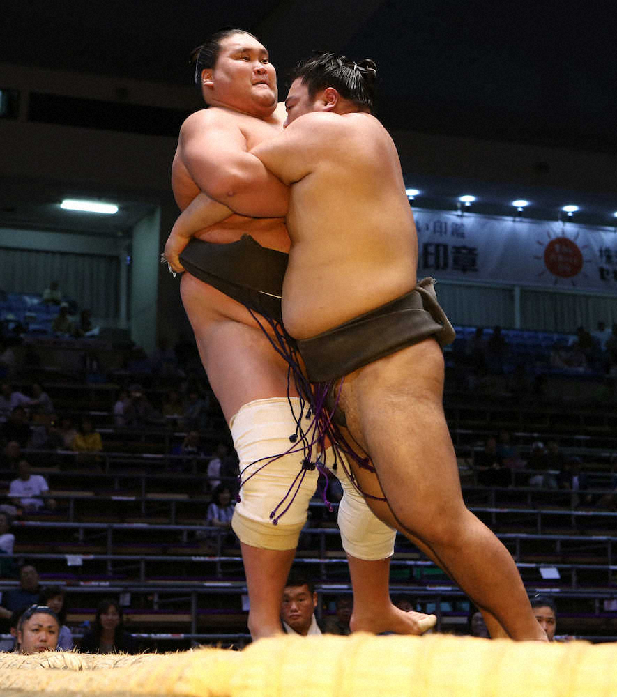 両膝の負傷などから復帰して3場所目の元大関で東幕下59枚目の照ノ富士(27=伊勢ケ浜部屋)が2番相撲で敗れた。東幕下58枚目の大野城(23=高田川部屋)との対戦は左を差しかけたがかなわず、もろ差しを許して両腕を抱える体勢に。決めながら前に出ても残され、1分を超える長い相撲の末に寄り切られた。復帰後の本割では、三段目だった夏場所8日目の4番相撲に続く2度目の黒星で、1勝1敗となった。