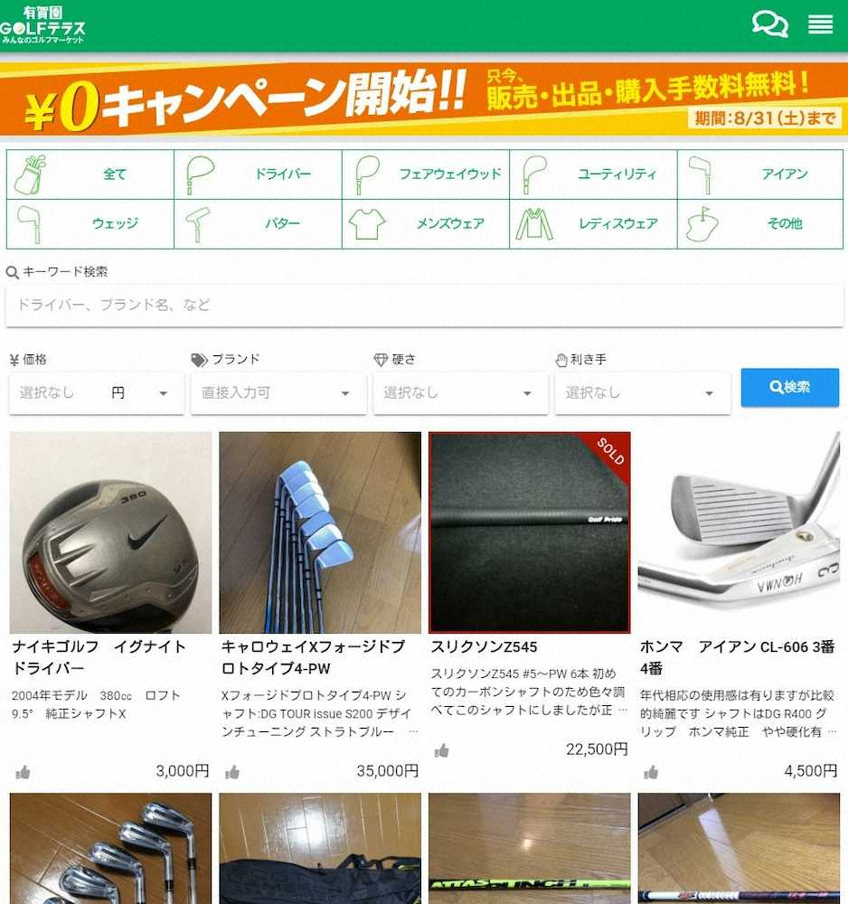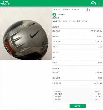 では、「有賀園ゴルフテラス」はどれほどすごいのか。スポニチ記者も実際に試してみた。家に眠っていた04年モデルのナイキゴルフ「イグナイト ドライバー」を出品。手順は簡単だ。会員登録を済ませ、売りたい商品の説明文を書き、写真を撮って添付するだけ。値段を3000円に設定し、説明文にはしっかりと「やや傷や汚れあり」と書いておいた。売れるかどうか心配だったが、当日中に買い手が見つかり驚いた。買い手とのやりとりもスムーズ。ストレスがなく売買ができて本当に便利だった。今後も家にある使わないものを積極的に出品していきたい。買い手としても出品物には掘り出し物が多く魅力的。隙間時間にいつものぞいてしまいそうだ。