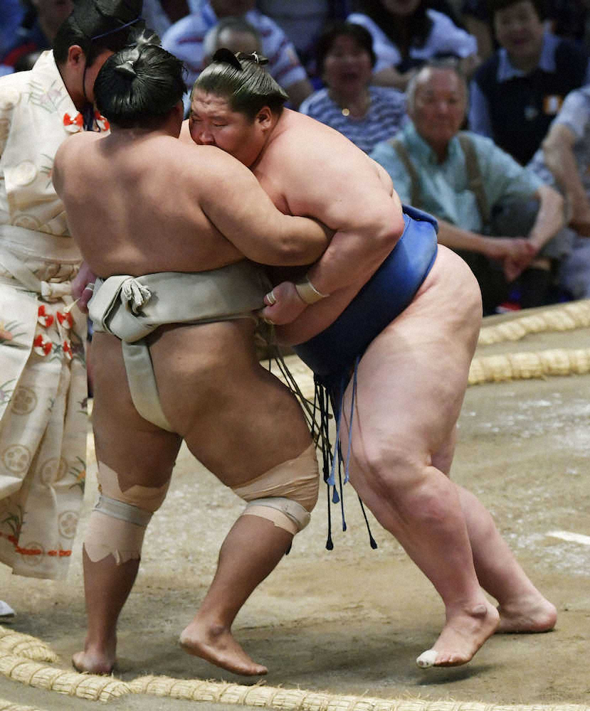 前に出る相撲を意識して結果につなげている。「(自分は)体重があるので、下がるとそのまま下がるから」と話した。