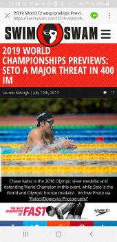 「SWIM SWAM」は19日付で「400メートル個人メドレーは瀬戸が最大の脅威」の見出しで特集を組んだ。今季ベストタイムは瀬戸が4分7秒95でトップ。連覇を狙うケイリシュ(米国)は自己ベストから7秒55遅い4分13秒45しか出していないことを紹介した。五輪出場権を得る金メダルに向けて絶好調の瀬戸と、連覇を目指して本気モードに突入したケイリシュ。ハイレベルなレースは必至だ。