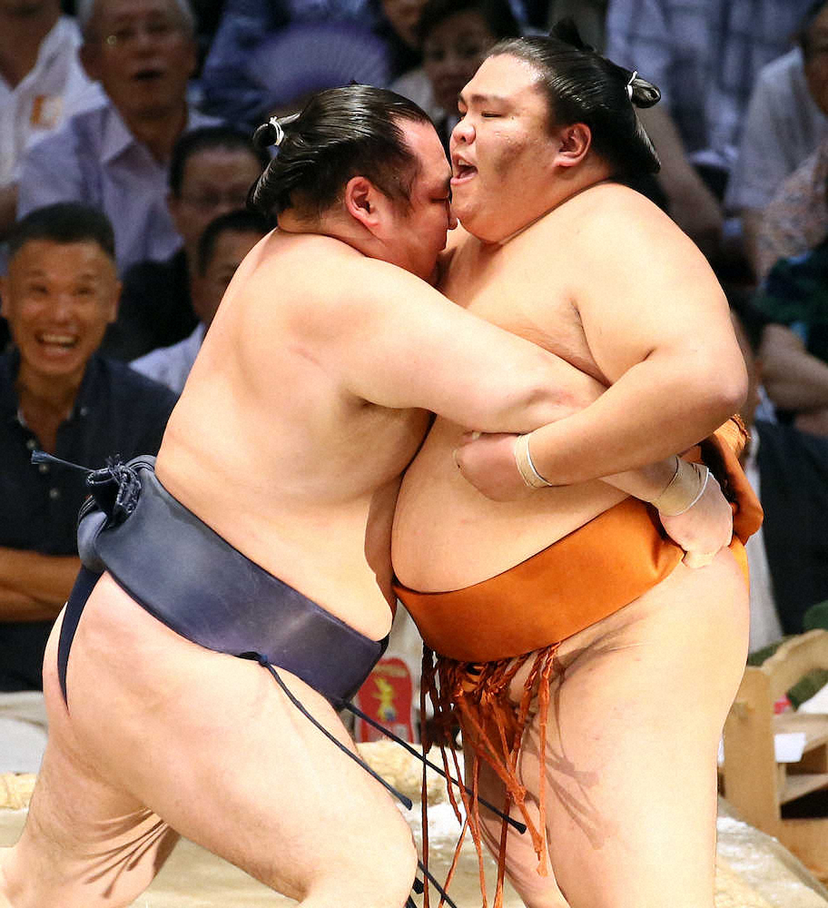横綱・鶴竜は絶対に引かない強い決意で難敵を退けた。関脇・御嶽海には過去6勝5敗とほぼ五分。鋭く踏み込んだ立ち合いでまわしを取れなくても慌てない。相手の左喉輪をこらえて、左前みつ、右下手をつかんで一気に寄り切った。「よかったです。(13日目の今場所初黒星を)しっかり反省して、初日の気持ちでいこうと思いました」。前日は友風に立ち合いではたかれて金星配給。そのショックを引きずらず、しっかり踏み込んでの速攻完勝だ。