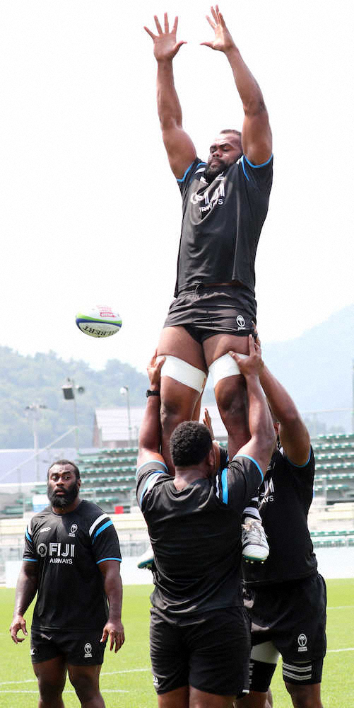 <フィージー代表練習>ラインアウトの練習をするフィジー代表(撮影・久冨木 修)