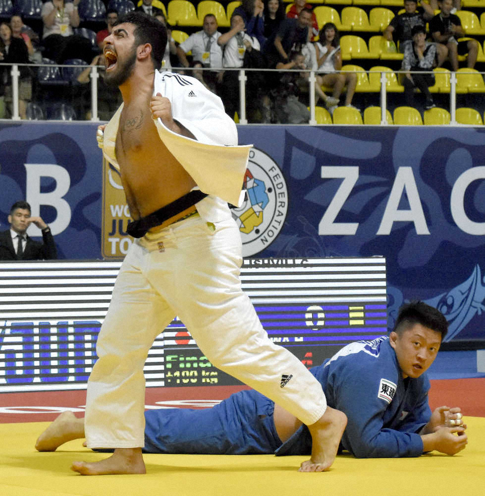 畳に突っ伏し、ぼう然とする原沢。その横で、ザーリシビリが勝利の雄叫びを上げた。男子100キロ超級決勝で、日本のエースが19歳の世界ジュニア王者に一本負け。「外国人選手の力強さを改めて感じた」とうなだれた。