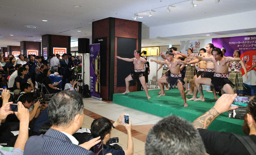 ラグビーW杯日本大会の開幕まで50日となった1日、出場チームのユニホームや過去大会のメダルなどを紹介する展覧会が東京駅の地下街で始まり、訪れたファンが貴重なグッズを写真に収めていた。開会イベントには、15年のイングランド大会で日本代表として活躍した大野均選手(41)も参加。「日本代表は期待の持てるチームに仕上がっている。大会成功に向けて、力を尽くしていきましょう」と呼び掛けた。