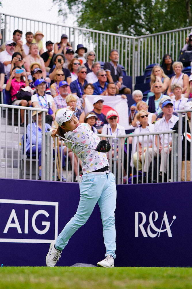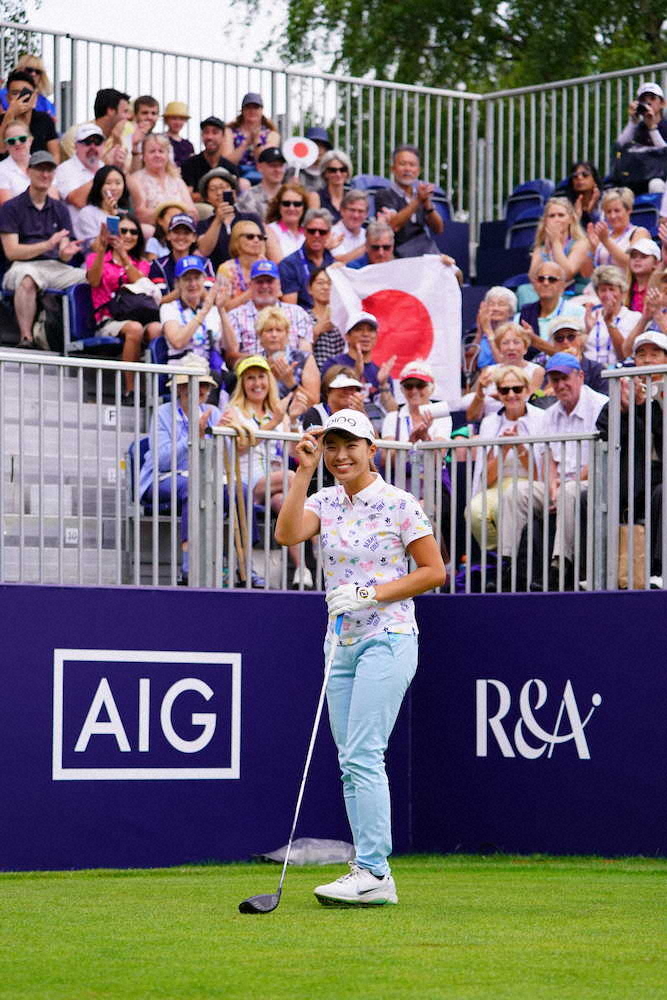 勢いが止まらない。単独首位に立った渋野が18番のグリーンに上がると、英国のギャラリーから大きな拍手が湧き起こった。笑顔で頭を下げながら、その声援に応える。2位と2打差の単独首位でメジャー制覇の偉業に王手をかけた。