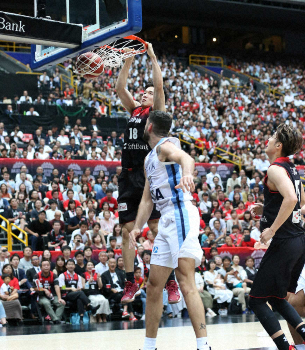 同じ中学出身の2人が日の丸を背負い、04年アテネ五輪金メダルの強豪を苦しめた。第1クオーター開始54秒、八村がいきなり魅せた。ウィザーズのシェパードGMが視察する中、ドラフト後の代表3試合目で初めての豪快ダンクシュート。「思い切りやることで、チームメートに勇気を与えられるプレーがしたかった。最初にそれができた」と振り返った。