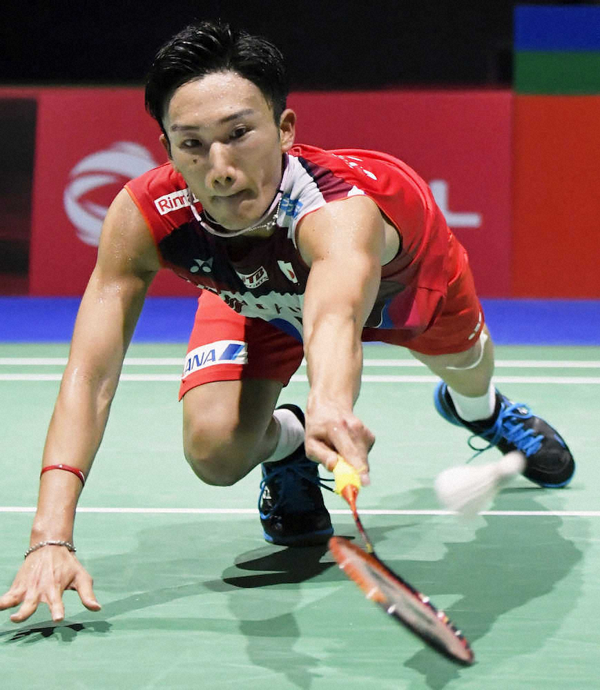 男子シングルス3回戦 インド選手と対戦する桃田賢斗(共同)