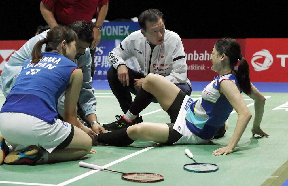 23日の準々決勝で、昨年3位の米元、田中組の北都銀行勢が昨年女王で世界ランク1位の永原、松本組と対戦し、第2ゲーム3―3の場面で米元が左足を痛めて途中棄権した。米元は試合後、現地の病院で検査を受けた。