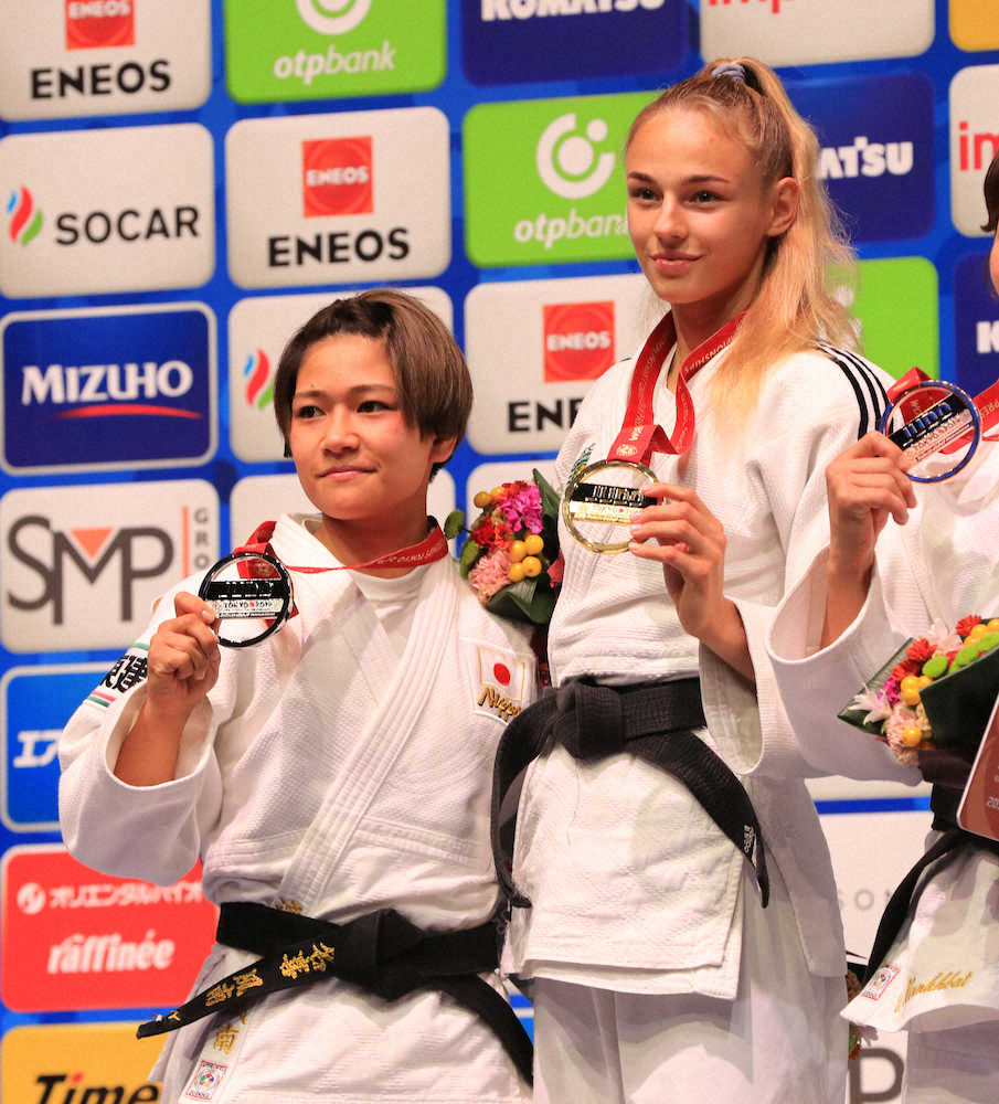 決勝は自ら「アナコンダと言われることがある」長い脚を生かした払い腰で技ありを奪いながら、終盤は指導2で反則負けのピンチ。「いつもより強いプレッシャーを感じていたけど、昨年と同じ結果で自信になった」と笑顔を振りまいた。