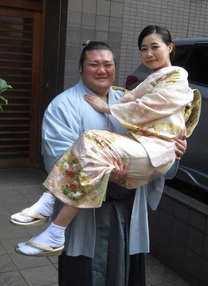 名古屋市でファッション関連事業を手がける会社に勤務している真梨絵さんと出会ったのは東農大を経て時津風部屋に入門してから3場所目の16年名古屋場所、知人が開いた食事会だった。「完全に一目ぼれ」という豊山が「相撲以上に積極的だった」と猛アプローチして交際に発展。約3年の交際を経て「寄り切りました」とゴールインを果たした。