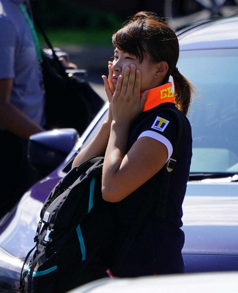 練習ラウンドをキャンセルしコースを後にする渋野日向子(撮影・沢田 明徳)