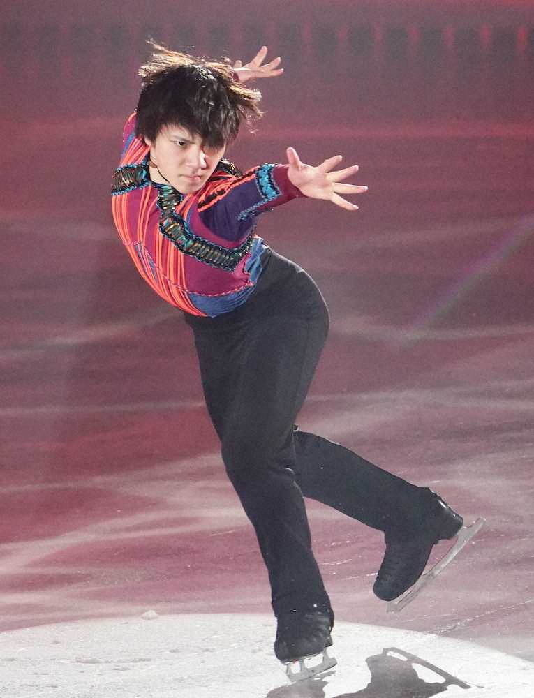 レッドとブルーの奇抜な上着の衣装で現れ、冒頭は4回転トーループに挑戦。3回転半(トリプルアクセル)やクリムキンイーグルなどで魅了した。「去年もアイスショーで使っていたプログラム。それをSPにしようとなった。試合用にジャンプもステップも入れて、つい先日、作り直しました。僕にとっては初めての動きっぱなしのプログラム。シーズン後には簡単に滑れるようにしたい」と語った。