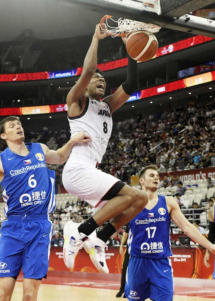 バスケットボールW杯1次リーグE組で世界ランク48位の日本は、同24位のチェコに76―89で敗れた。八村塁(21=ウィザーズ)は豪快なダンクを2度決めてチーム最多の21得点。シューズが脱げながらアシストもマークするなど奮闘したが、トルコ戦(1日)に続いて欧州初撃破に届かず、E組最下位で敗退が決まった。5日は、2次リーグ進出を決めた世界1位の米国と激突。7、9日には東莞で17~32位の順位決定戦に臨む。