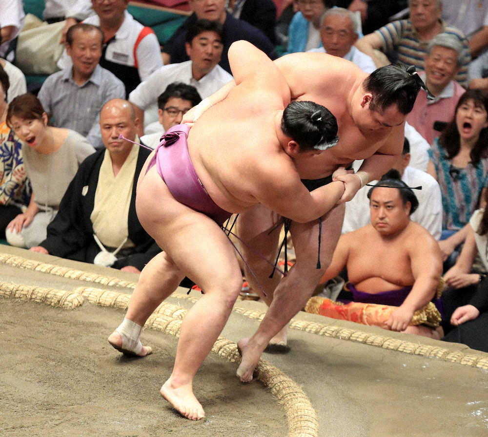 御嶽海(26=出羽海部屋)は阿炎(25=錣山部屋)を突き落としで下し2日目から4連勝。隠岐の海(34=八角部屋)は琴勇輝(28=佐渡ケ嶽部屋)を叩き込んで初日から5戦全勝とした。人気者の小兵・炎鵬(24=宮城野部屋)は大翔鵬(25=追手風部屋)を突き落としで破り連敗を回避、1敗を守った。貴景勝、隠岐の海の2人が5戦全勝で、1敗は鶴竜、豪栄道ら8人となった。