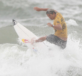 1ヒート3、4人編成で上位2人が次戦に駒を進める。4回戦でCT1位のフィリップ・トレド(ブラジル)と対戦した五十嵐は、相手の得意技である空中で横回転をする「エアー」を連発。お互いに一歩も引かない“エアー合戦”の末、合計13・73点で競り勝った。「お互いに合図して、ヒート中に勝負することになった。楽しかった」と笑顔。続く5回戦ではなかなか波に乗れず苦しみ、敗者復活戦へ。決勝までは温存する作戦で勝ち進んできたが、「敗者復活は100%の力で戦う」と闘志を燃やした。