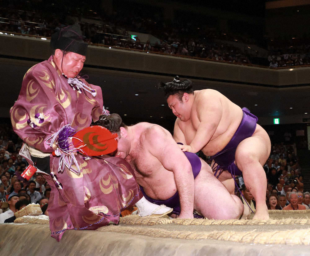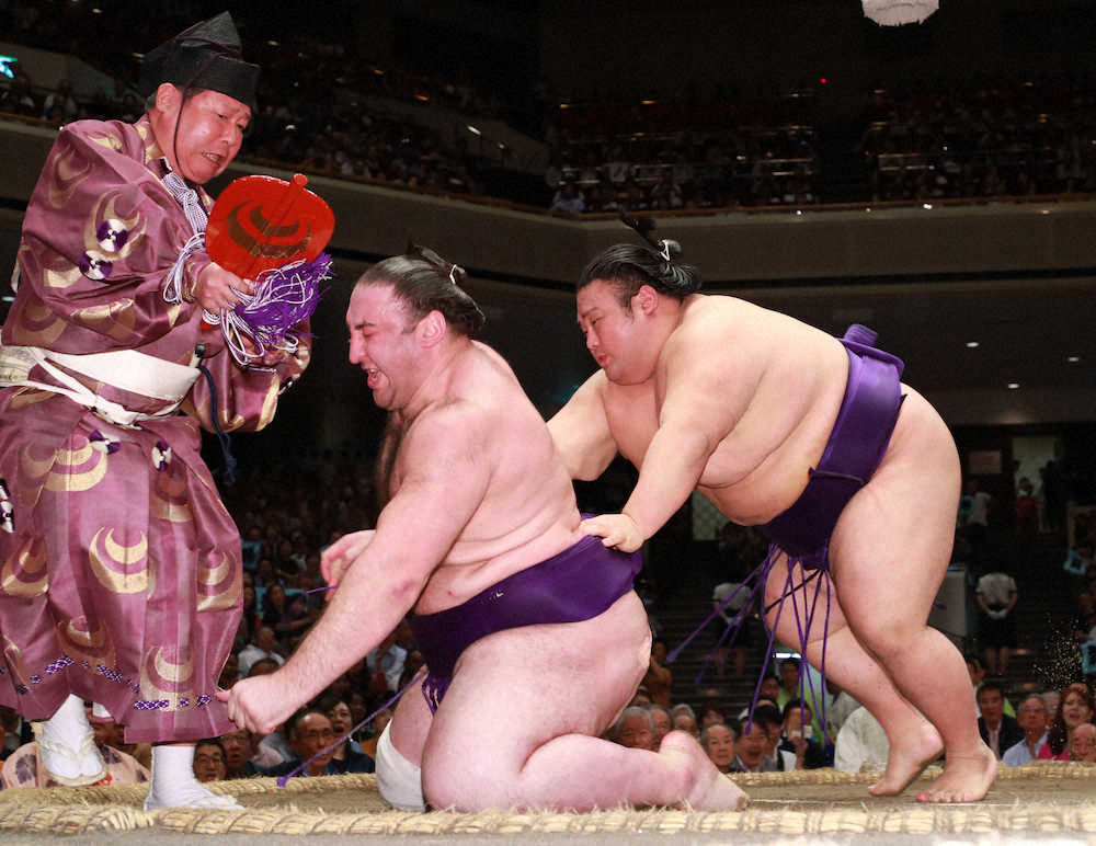 栃ノ心(中央)を送り倒しで破る貴景勝。左は行司の式守伊之助(撮影・郡司 修) Photo by スポニチ 貴景勝 大関復帰王手!2敗堅首、謙信魂背負い“戦国の秋”いざ参る ギャラリーで見る この記事のフォト 2019年09月19日の画像一覧 もっと見る 2019年09月19日の画像をもっと見る