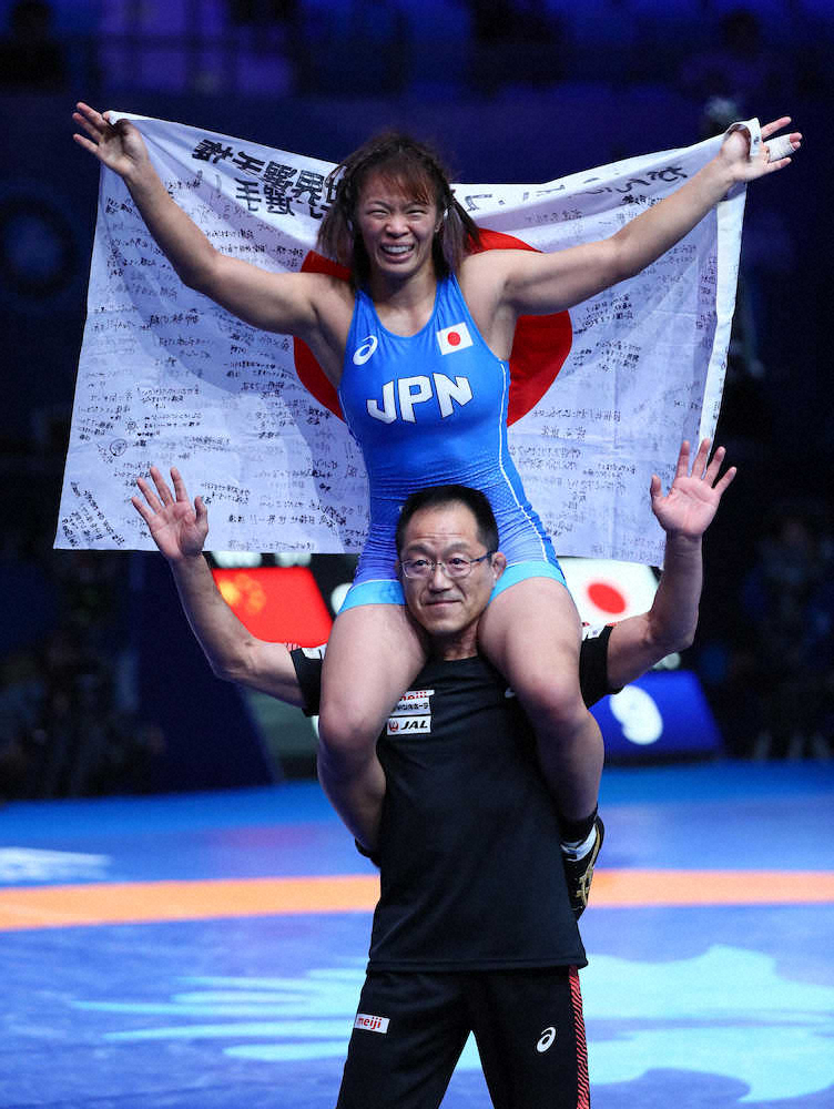 レスリングの東京五輪予選を兼ねた世界選手権第6日は19日、カザフスタンのヌルスルタンで行われ、女子は東京五輪代表に決まった57キロ級の川井梨紗子(ジャパンビバレッジ)が決勝で昨年覇者の栄寧寧(中国)を9―6で下し、3度目の世界一に輝いた。今大会の日本勢で3個目の金メダル。