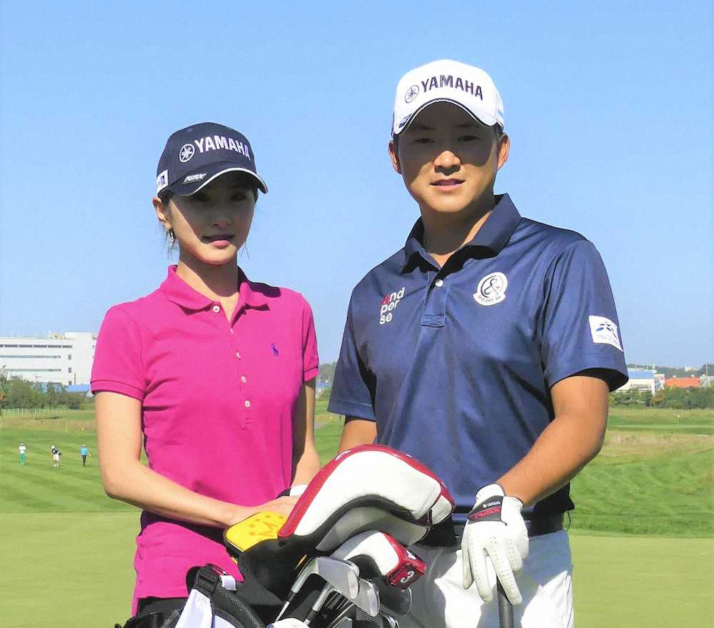 初めて臨む韓国での試合だが、いつもよりリラックスした表情。それもそのはず。婚約者の若松さんと約2年ぶりにタッグを組んだ今平が、66をマークして首位スタートを切った。