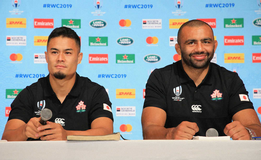 ラグビー日本代表のフランカー、リーチ・マイケル主将(30=東芝)と、SO田村優(30=キヤノン)が21日、都内で会見をした。前日のW杯開幕ロシア戦を30―10で勝利。4トライ以上のボーナス点を得た。田村は、開幕戦の重圧を改めて振り返り「緊張して死ぬかと思った。ミスはあったけど、ボールを動かす時間もたくさんあった。緊張から解き放たれて、次の方がもっと楽しみだと思う」と次の28日の世界ランキング1位、アイルランド戦に目を向けた。