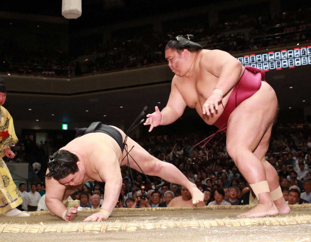 御嶽海、変化つけ決めた 関脇2度目Vへあと一歩